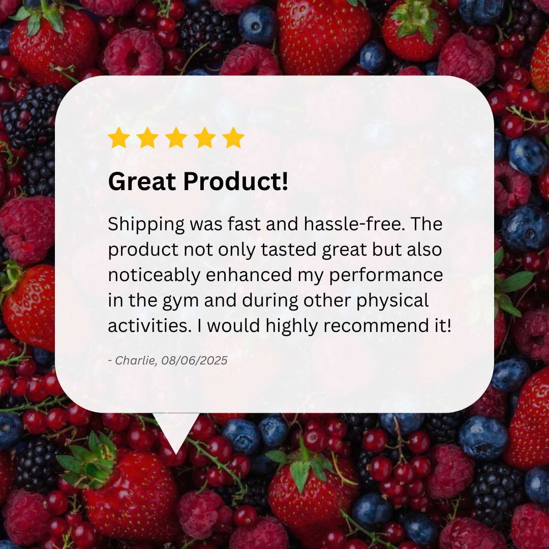 Shipping was fast and hassle-free. The product not only tasted great but also noticeably enhanced my performance in the gym and during other physical activities. I would highly recommend it.